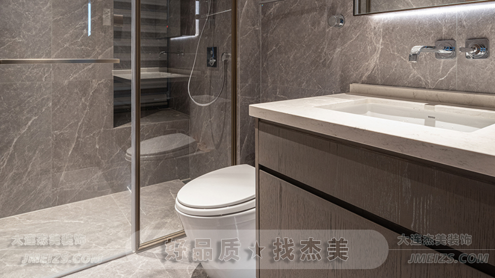 墻面上的灰色大理石,簡約而優(yōu)雅,如同月光下的湖面,靜謐而深邃。
