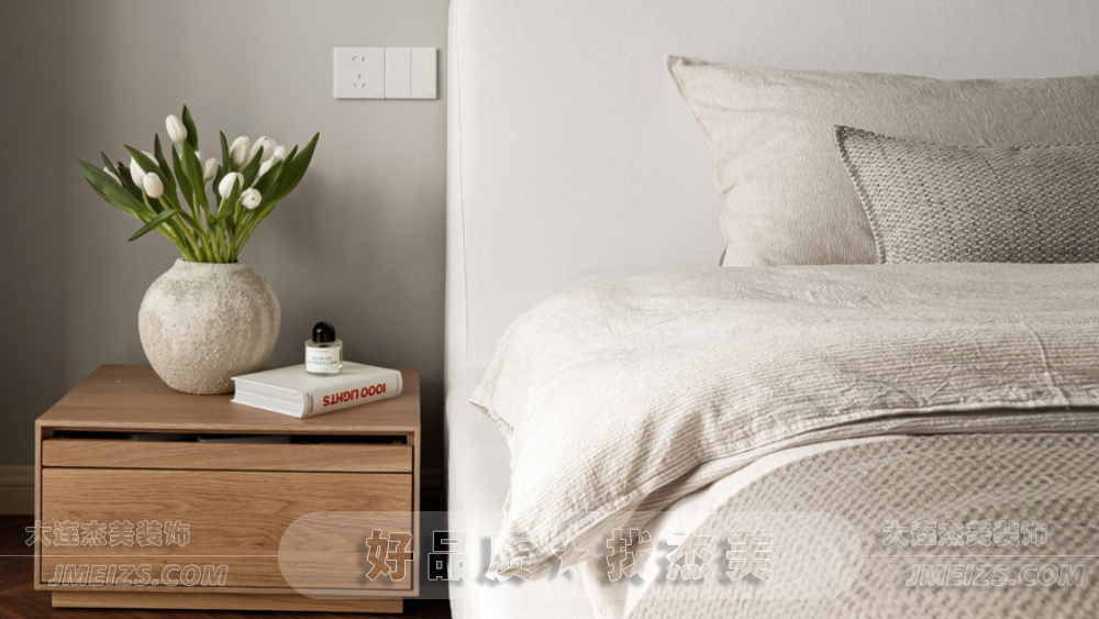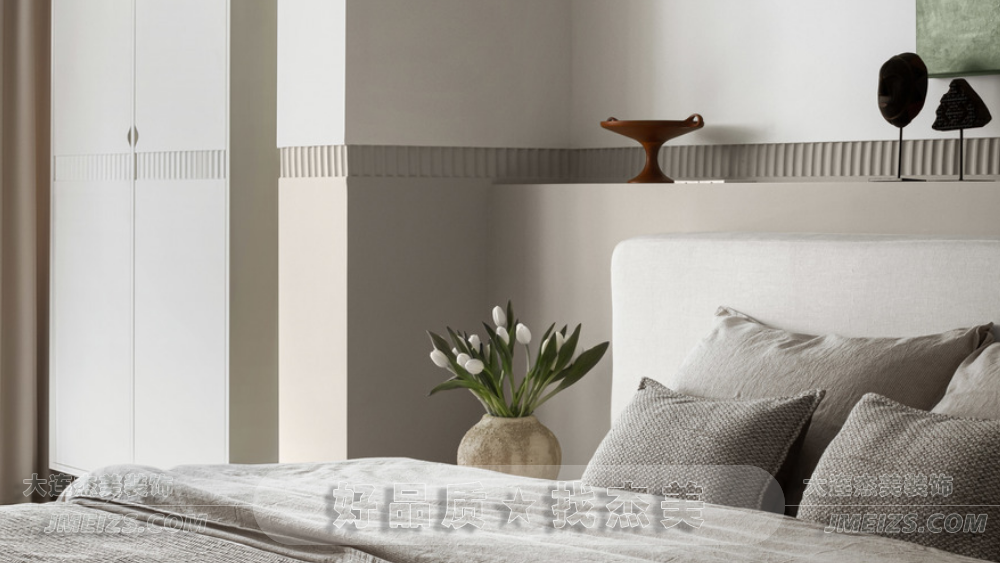 床頭的半墻延續(xù)了整體空間的風(fēng)格,淺色系的設(shè)計(jì)為空間增添了層次感。整體搭配簡(jiǎn)約和諧,也便于使用日常物品。